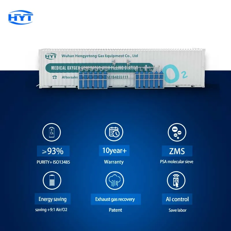 The Hengyetong’s oxygen generator utilizes Pressure Swing Adsorption (PSA) technology to extract oxygen from the surrounding air, producing a pure and clean supply of medical-grade oxygen. This not only eliminates the need for traditional oxygen cylinders but also ensures a continuous and on-demand supply of oxygen for patients in need. With its high purity certification, hospitals can rest assured that the oxygen generated by this system meets the strictest medical standards.